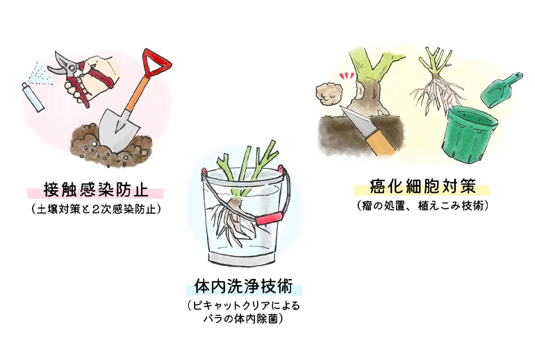根頭がんしゅ病は細菌感染なので、根頭がんしゅ菌さえ増殖させなければ非常在菌化することも可能です。