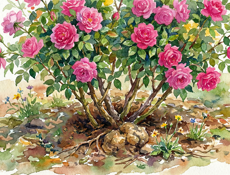 バラがとても元気に育っていたのに急に枯れたとか極度の成育不良になった場合、その原因は根頭がんしゅ病感染だったということは多々あります。