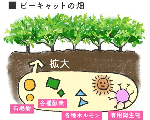 土壌には有用微生物、有機酸、各種酵素、各種ホルモンがたくさん
