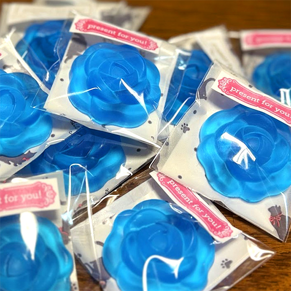 無農薬で育ったバラから抽出したバラエキスやローズオイルが入った、バラの形をした石けんです。