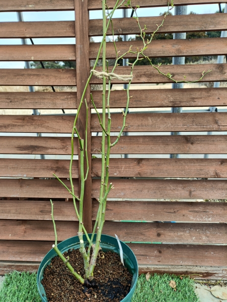 親木として2年ほど育てた苗です。トゲがないので扱いやすいつるバラです。(2月20日撮影)