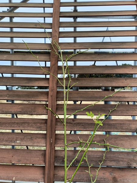 樹勢が強く、トゲの無い枝を奔放に良く伸ばします。