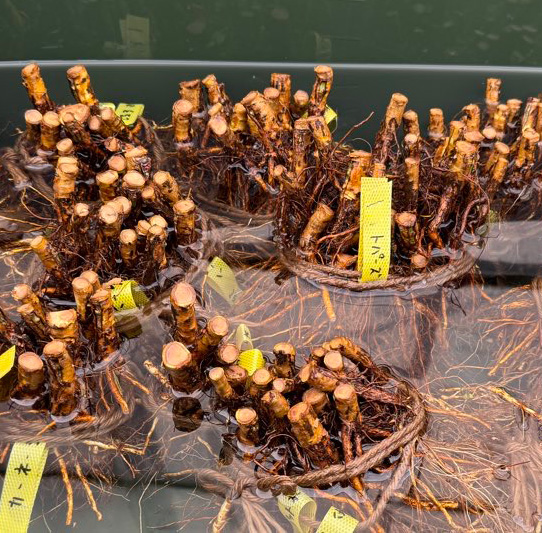 写真:芽接ぎ苗のピキャットクリア体内洗浄の様子